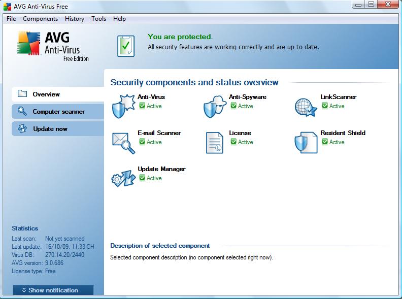 Základná ochrana antivirus a antispyware pre systém Windows dostupná na bezplatné stiahnutie. Má obmedzené niektoré funkcie, podporu nájdete len na adrese https://forums.avg.com/sk-en/avg-free-forum a dá sa používať len pre súkromné a nekomerčné účely. Pri surfovaní vás chráni LinkScanner pred škodlivými stránkami. Má rýchle prehľadávanie počítača s novým vylepšeným programom na detekciu vírusov a automatické aktualizácie sa starajú o zachovanie aktuálnej ochrany. Program je plne kompatibilný s operačnými systémami Windows XP, Vista a Windows 7.